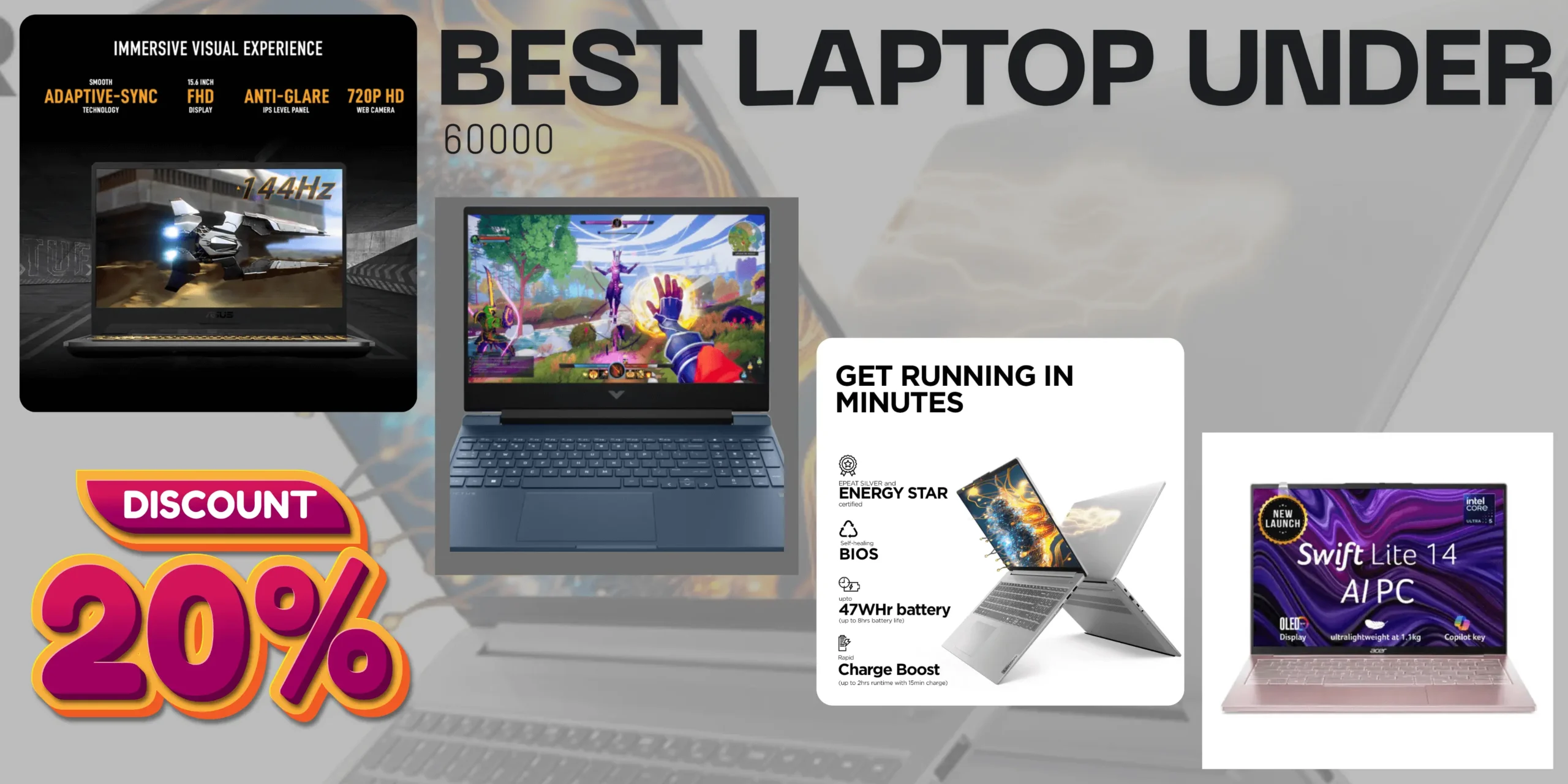 Best Laptop under 60000 – Top picks from Asus, Lenovo, and Acer with discount offers and powerful performance. Best laptops under 60000 – Asus, Lenovo, and Acer comparison with 20% discount offers. Source: Official brand websites.